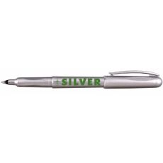 Značkovač se stříbrnou stopou písma. Ideální pro psaní, kreslení a dekorování na tmavých i světlých papírech. Inkoust je permanentní na papíře a porézních materiálech a částečně permanentní na skle, kovech a plastech. Válcový hrot, šíře stopy 1 mm.