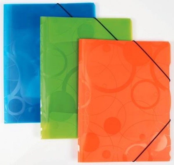 Složky se 3 klopami z pevné, kvalitní polypropylenové fólie. Pevné a dostatečně pružné zavírání na gumu zajišťuje dokumenty před vypadnutím. Povrch desek v atraktivním designu Neocolori. Rozměr: 249 x 320 x 5 mm. Barva oranžová.